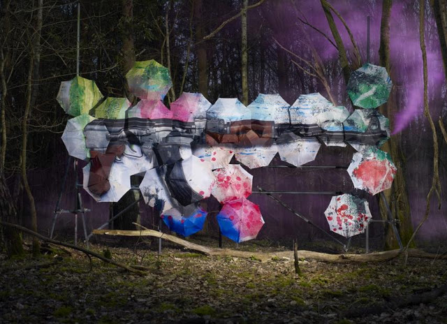 El nuevo proyecto artístico del británico es una mezcla de pirotecnia y fotos originales sobre un original soporte, los paragüas. La idea es tomar tres temas del cine de serie B estadounidense, como son las explosiones, las armas y el sexo, y unirlas en una acción e imagen única.