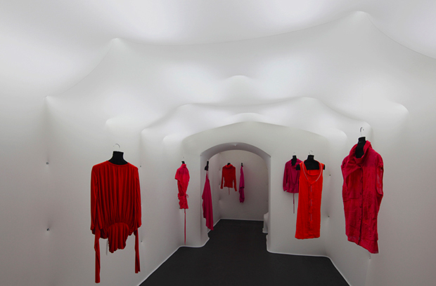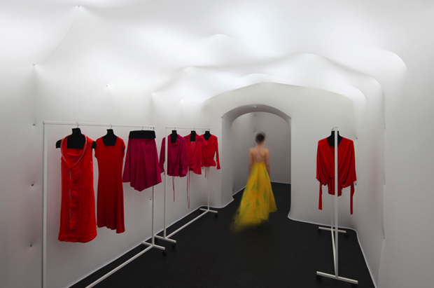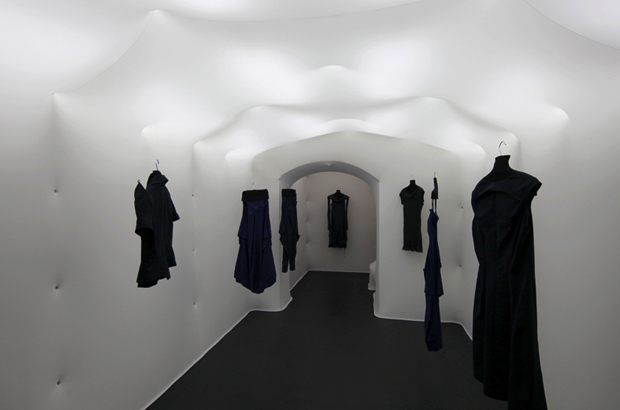 La prendas, tal y como se aprecia en las últimas fotos, se ven suspendidas gracias a unos ganchos colocados aleatoriamente en el espacio.