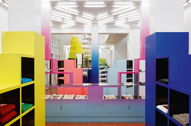 Sean Shuter y Daniel Jackson, decidieron ir en busca de un diseñador que realizará un proyecto de interiorismo que se alejara de los colores oscuros que en ocasiones, son tan comunes en las tiendas de ropa de hombres. En su búsqueda apostaron por el diseñador e interiorista, Rafael de Cárdenas, que siempre apuesta por la geometría, el color y los efectos ópticos.