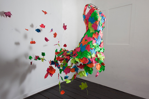 El artista, Kyle Bean, ha colaborado con el estudio londinense, Red Design, para crear un vestido otoñal para la firma, Union, y que ha sido instalado en el escaparate de su tienda de Brighton.