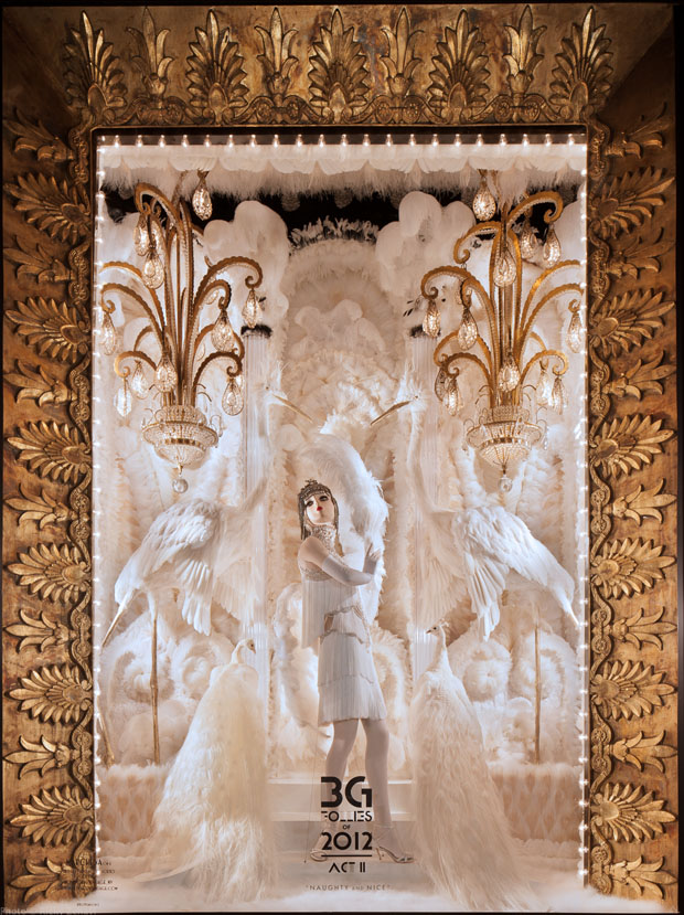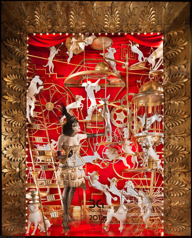 Bajo el título de «The BG Follies of 2012», los escaparates se han inspirado en los espectáculos musicales Ziegfeld Follies de Broadway, las revistas de vaudeville y los musicales de Busby Berkeley de la década de 1930 en Hollywood. Un renacimiento en miniatura del clásico estilo Art Deco, incidiendo en la fantasía que tuvo lugar en esa época dorada, donde se homenajea desde al artista Sally Rand como a la Marilyn Monroe de la película «Con faldas y a lo loco» de Billy Wilder.