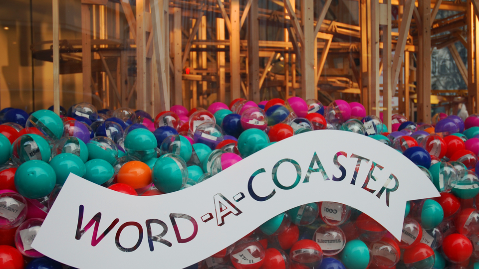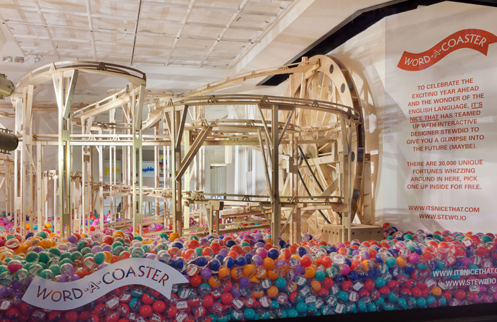 Desde el 12 de Enero hasta el 1 de Marzo, los almacenes londinenses nos presentan un escaparate que se compone de un dispensador de bolas con forma  de montaña rusa realizada en madera. El escaparate es una producción dentro del evento comercial, «Word, Word, Word» creado por Selfridges en su planta baja, Ultralounge. Los grandes almacenes han montado una verdadera biblioteca donde además habrá talleres, conferencias y expertos analizarán la escritura de los clientes, entre otras actividades.