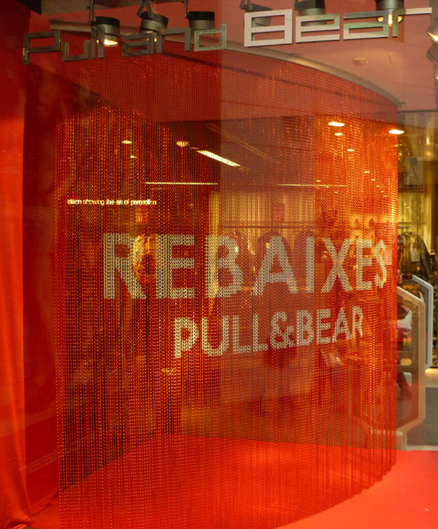 Os mostramos las cortinas de aluminio anodizado de KriskaDECOR que decoran los escaparates de rebajas de Pull & Bear. Las cortinas han sido instaladas en todas las tiendas de la marca de moda española, presentes en Arabia Saudí, China, Egipto, Hong Kong, Indonesia, Jordania, Kazakhstan, Qatar, y así hasta 48 países.